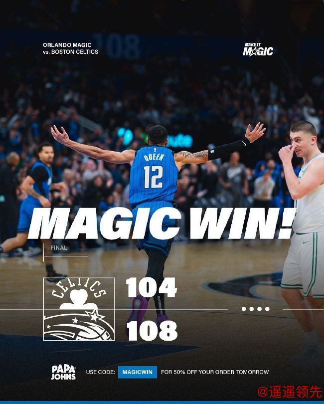 魔术两位核心以及大瓦格纳和哈里斯都因伤缺阵,但全民皆兵,在半场落后15分的情况下逆转险胜。魔术2连胜,19胜12负排在东部第四。