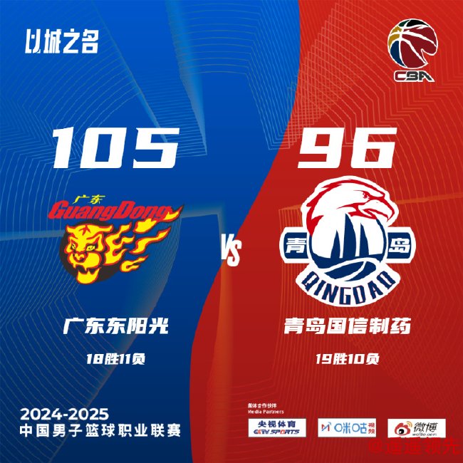 北京时间1月10日消息,2024-2025赛季CBA常规赛第29轮,广东男篮105-96击败青岛男篮。